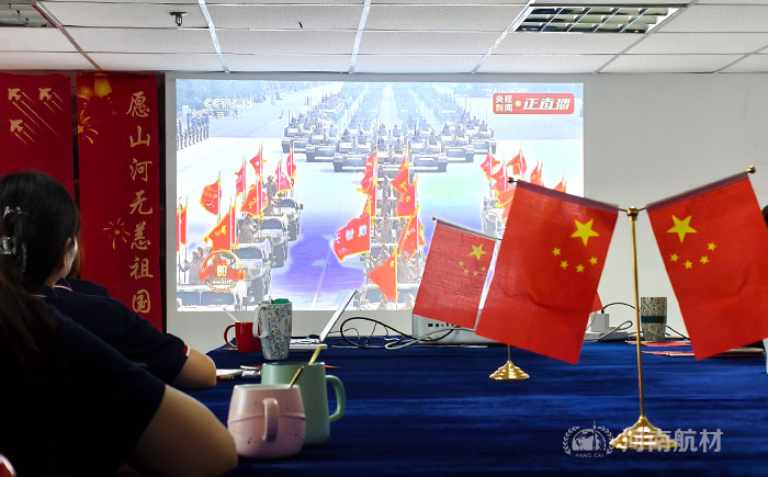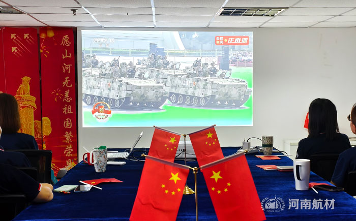 河南航材總部為弘揚(yáng)愛國主義精神,增強(qiáng)民族自豪感,激發(fā)單位凝聚力,組織全體員工觀看了閱兵活動直播。